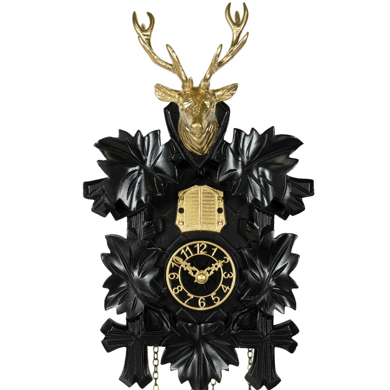 Ce coucou moderne Cerf doré est un véritable chef-d’œuvre de design et d’élégance. Alliant la forme traditionnelle d’un coucou avec une esthétique moderne et luxueuse, ce modèle est entouré de cinq feuilles noires et d’une tête de cerf dorée au sommet. Les poids, le balancier en forme de feuille et les autres éléments de décoration, tels que la fenêtre du coucou et le cadran à chiffres arabes, sont également dorés, ajoutant une touche de raffinement à l’ensemble.