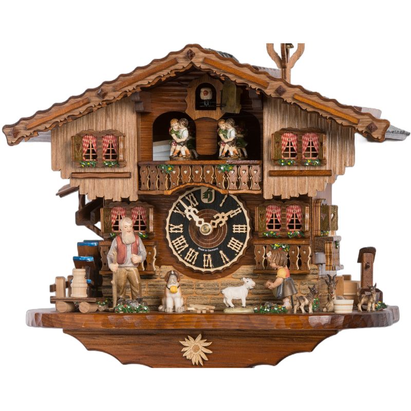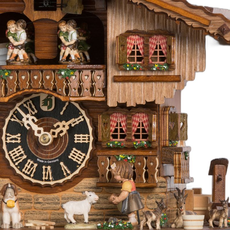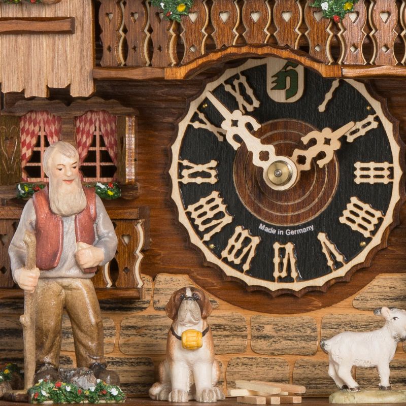 Fabriqué par Hönes, ce coucou musical Heidi met en scène la fillette nourrissant sa chèvre. La scène est complétée par son grand-père et son Saint-Bernard.