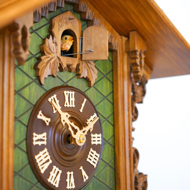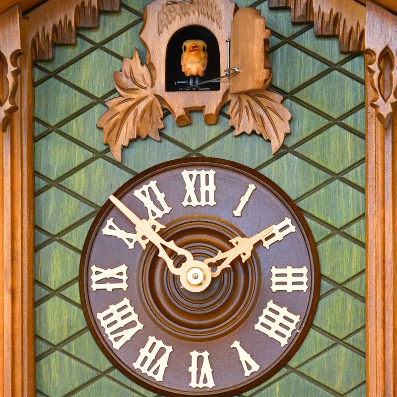 Ce coucou Rombach & Haas remet au goût du jour un modèle antique de 1885. Peint à la main et ornements en bois sculptés minutieusement pour une touche authentique et traditionnelle.